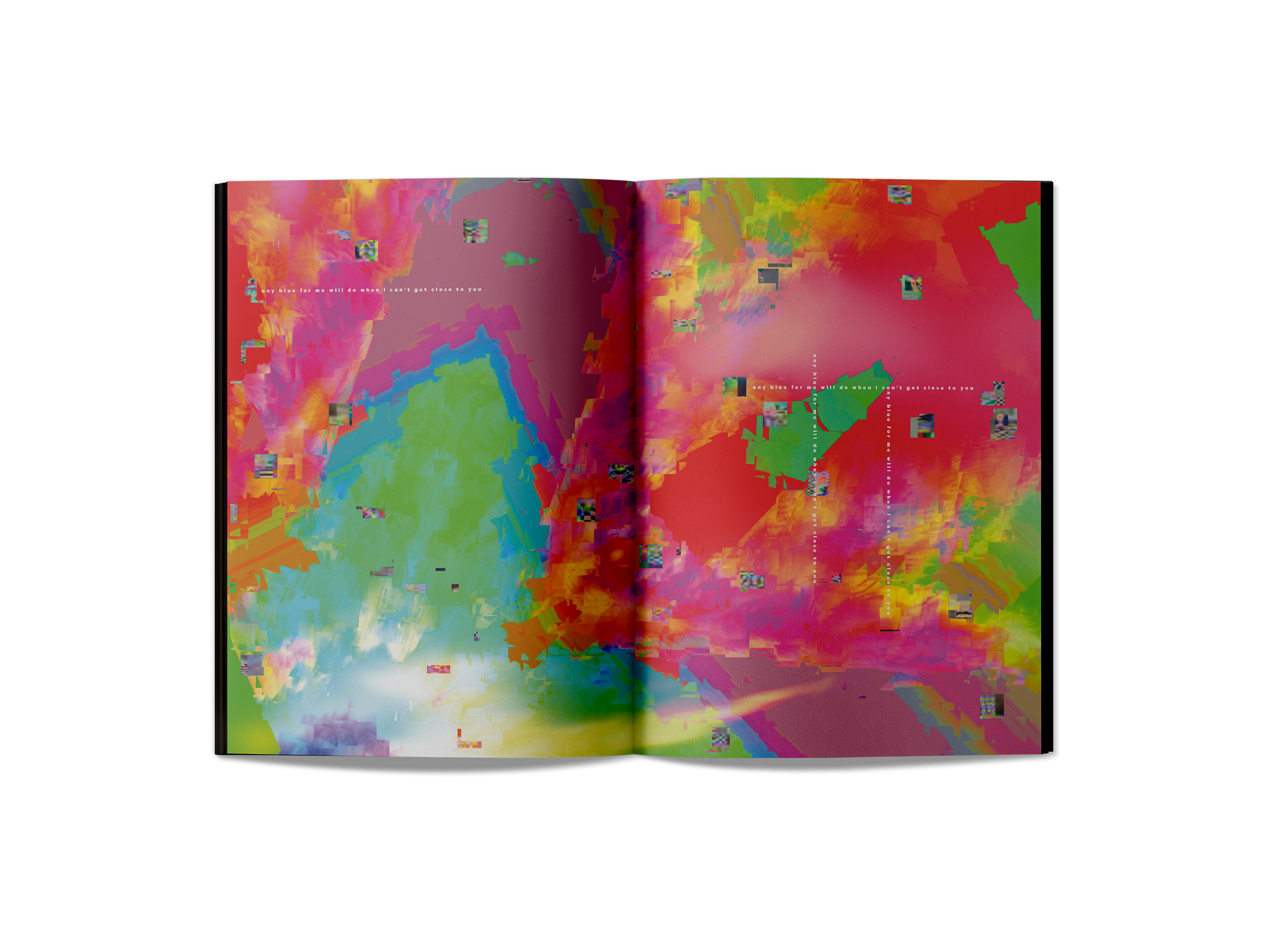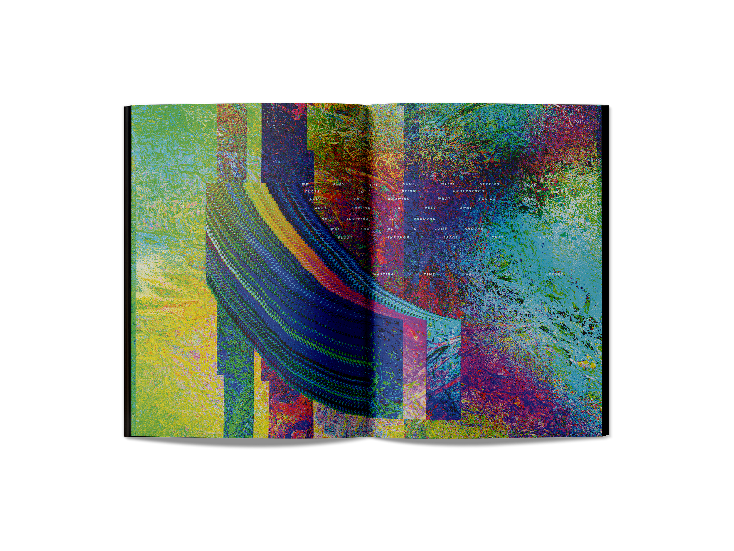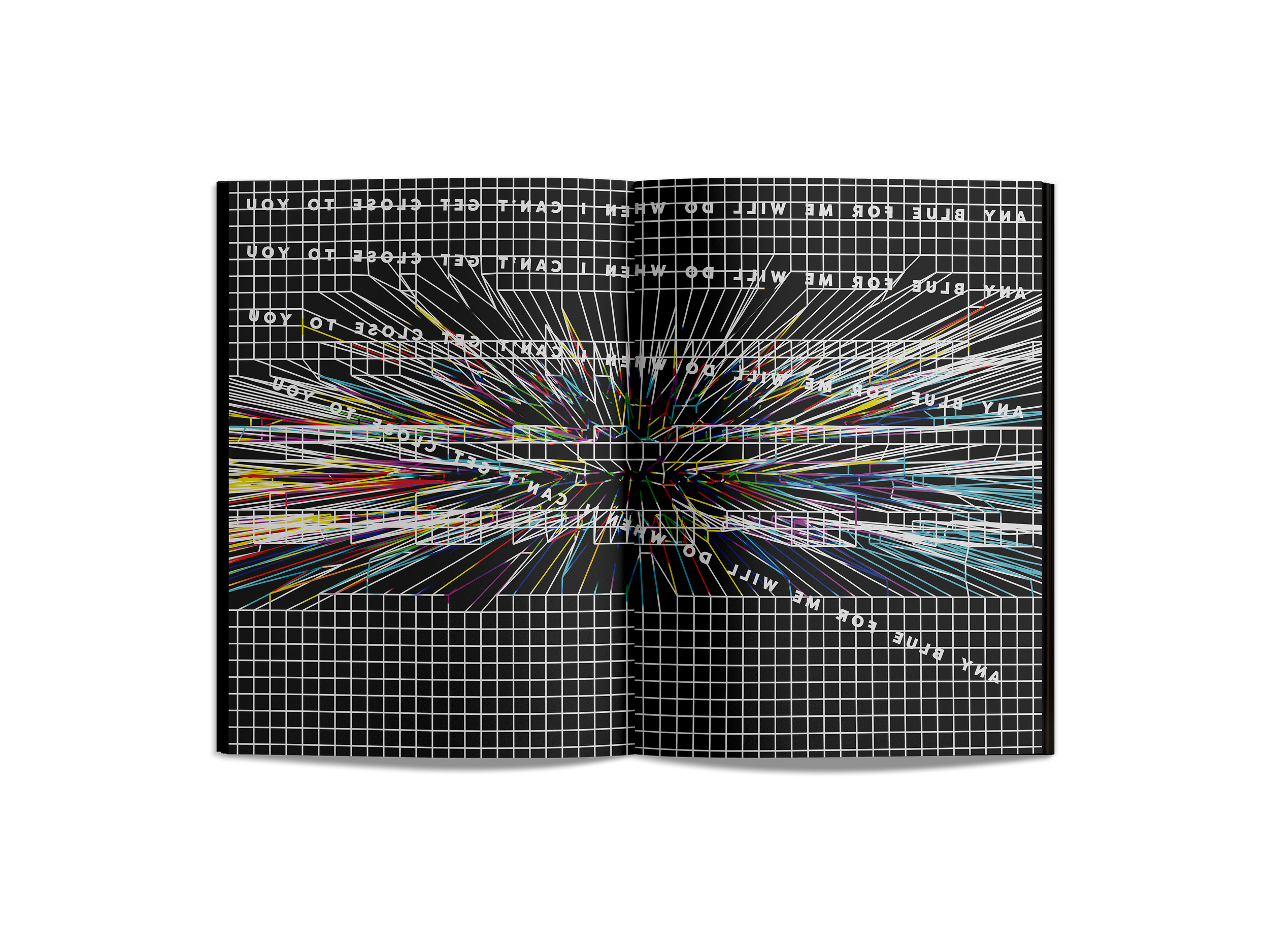 The idea? To experience the lyrics as the music is playing, with little consideration to the legibility of the lyrics or the pacing of the reader, as to pair with the song’s attitude and changes in tempo, the pages experimented instead with image manipulation and texture, often using photographs and textures from rehearsals and live shows but destroyed digitally to a point where they could no longer be made out.